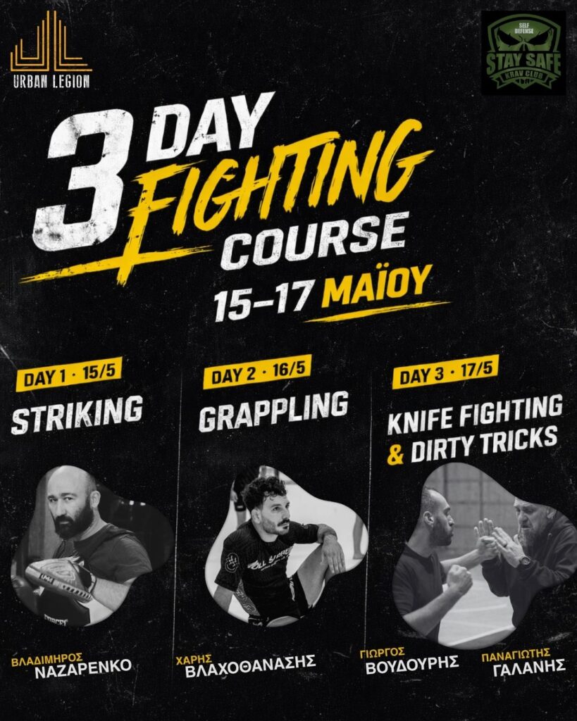 Ένα δυναμικό σεμινάριο αφιερωμένο στην επιβίωση απέναντι σε επιθέσεις με μαχαίρι — με έμφαση στη λήψη αποφάσεων και την επίλυση προβλημάτων υπό πίεση.